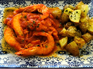que en este caso son unos langostinos acompañados de patatas fritas con su